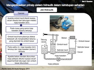 Pelajari mengenai topik Sistem Hidraulik Sains Tingkatan 5. Prinsip Sistem Hidraulik 6. 2 Cairan hidrolik tahan api.